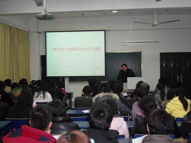 为了学习贯彻十七届四中全会精神,12月7日下午,管理工程系组织学生党员开展学习十七届四中全会专题。会议由系第三党支部书记徐晓平老师主持。在徐晓平老师的带领下,与会党员同学共同学习了《中国共产党第十七届中央委员会第四次全体会议公报》和《中共中央关于加强和改进新形势下党的建设若干重大问题的决定》。通过学习,广大党员同学对党的十七届四中全会有了初步了解。管理系今后将继续组织相关专题学习,不断加强对党员的政治理论教育。