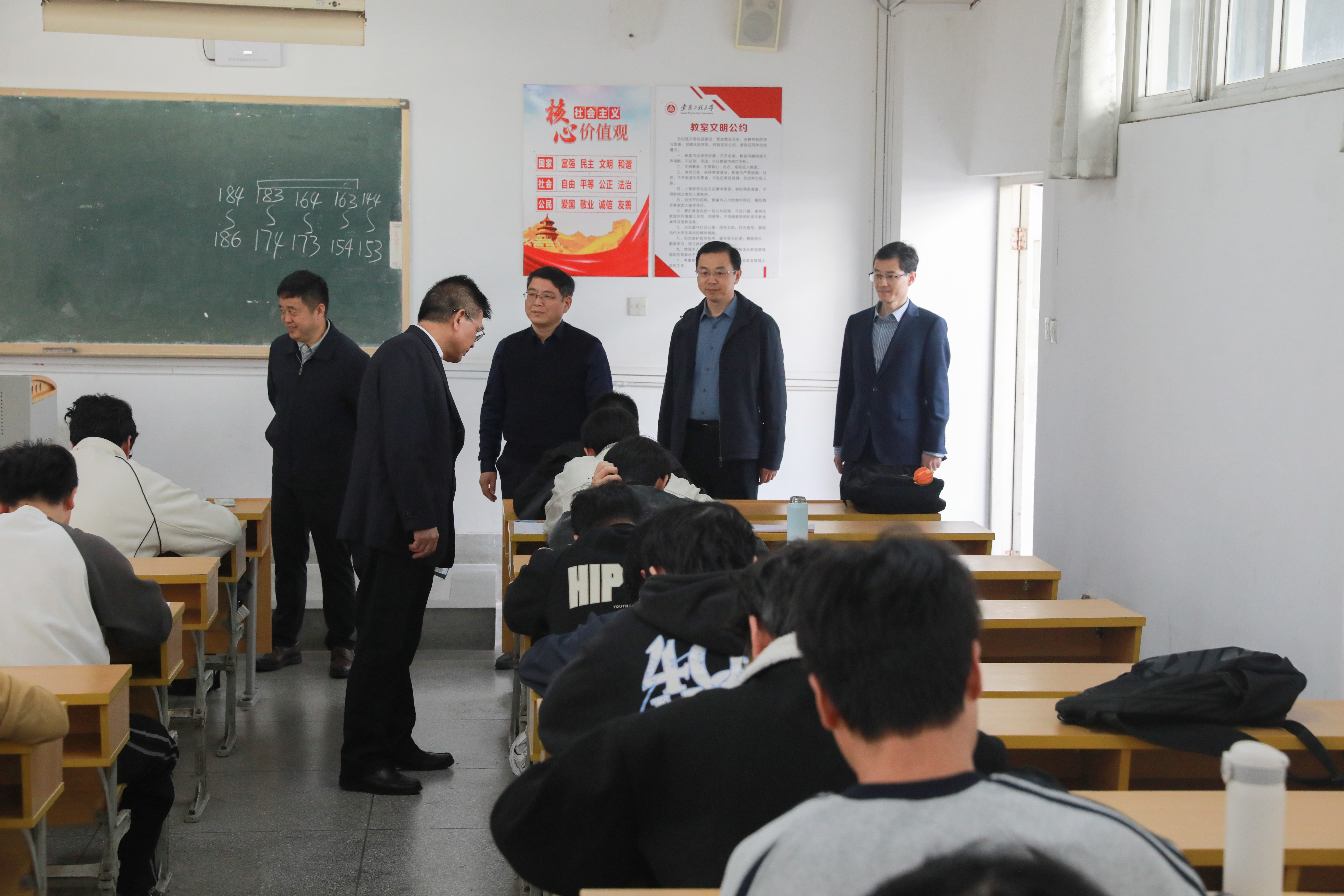 活动现场,校领导细致检查了现场布置、组织安排及学生作答状态。卢平指出,学业深造不仅关系到学生个人成长发展,更直接影响学校人才培养质量。他表示学校始终坚持以学生为中心,要求各学院、各职能部门需进一步加强协同配合,全面做好学业深造服务保障工作,持续细化完善学业深造指导举措,为学生搭建更稳固、更高效的成长支撑桥梁。鼓励广大学生以此次检测为重要契机,精准查找知识短板与学习漏洞,在后续备考中锤炼意志品质、沉淀综合能力。