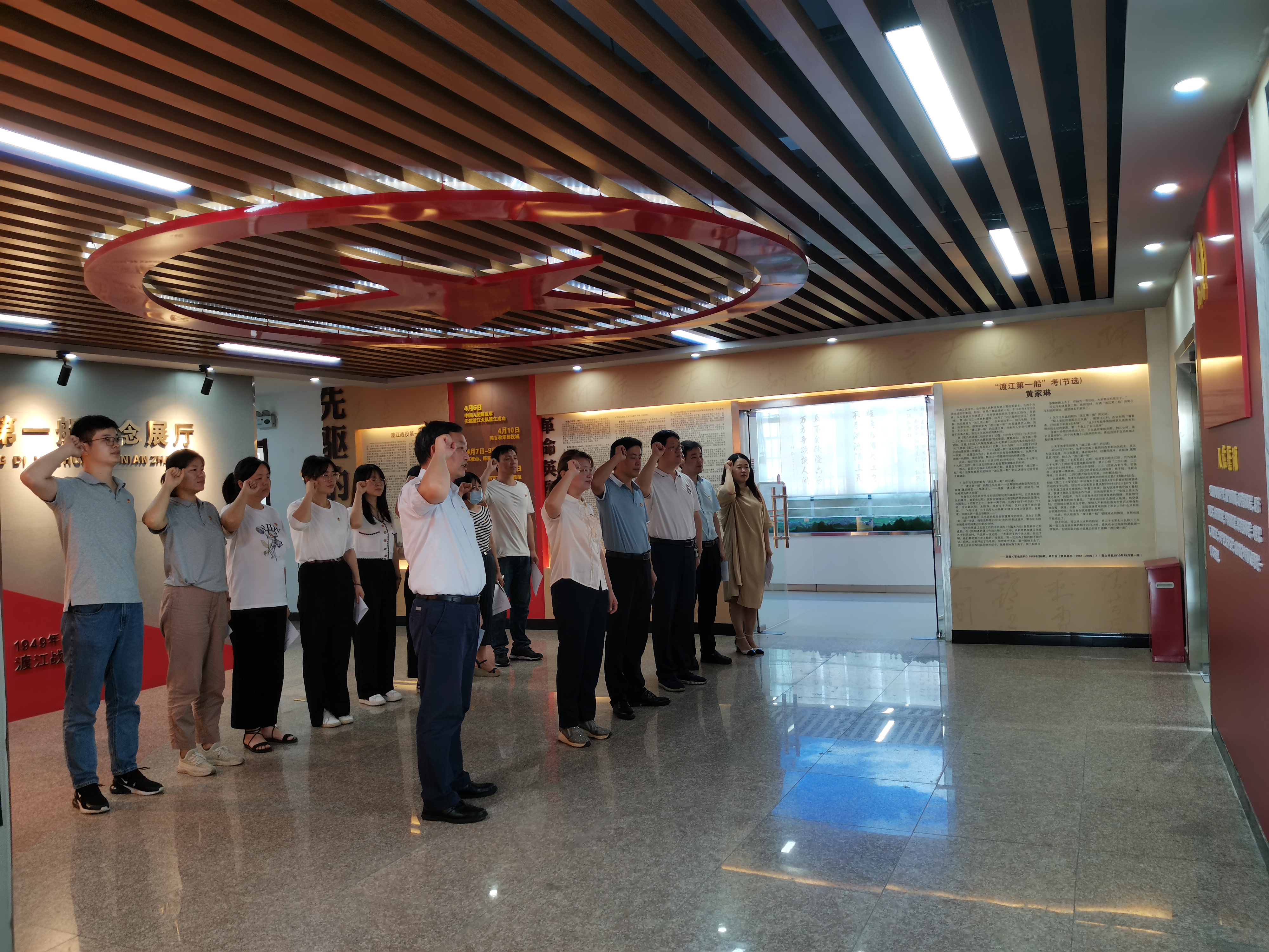 全体老师共同瞻仰了位于弋江区保定街道团洲村夏家湖“百万雄师渡江第一船登陆点”,认真学习了一九四九年四月二十日,第二十七军七十九师二三五团一营三连二排五班率先在夏家湖登陆的伟大历史时刻,石碑上鲜红的大字仿佛在无声地述说当年的铁血横渡,在场的老师在纪念碑前也纷纷追忆那些为新中国诞生而奋斗和献身的英雄先烈。纪念碑参观结束后,全体人员来到团洲村村部的渡江战役展厅继续学习,一幅幅珍贵、生动的历史图片、实物、影像再现了当年渡江战役的历史全貌,在解说员的带领下深刻感受那段壮烈非凡的历史。学习结束,邓英扣带领全体教师面向党旗举起右手重温入党誓词,现场共同诵读伟大建党精神。邓英扣要求全体人员要弘扬光荣传统、赓续红色血脉,为实现第二个百年目标继续奋斗。