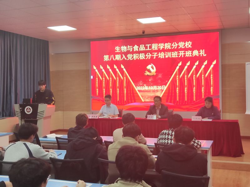 为提高新一届入党积极分子培训班的成员学习积极性,促进入党积极分子学好党的知识,进一步提高对党的认识。20231020日,生物与食品工程学院于学院虚拟仿真中心举行第八期入党积极分子培训班开班典礼。学院党委副书记、纪委书记、分党校副校长王彦青,辅导员何祥玲、本科生以及研究生78名学员参加开班仪式。仪式由培训班班主任胡晓康主持。